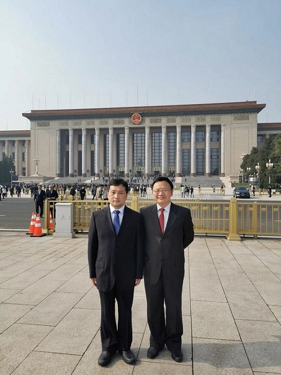 11月3日,胡衛(wèi)明(右一)、李兵(右二)參加國家科學技術獎勵大會。受訪者供圖